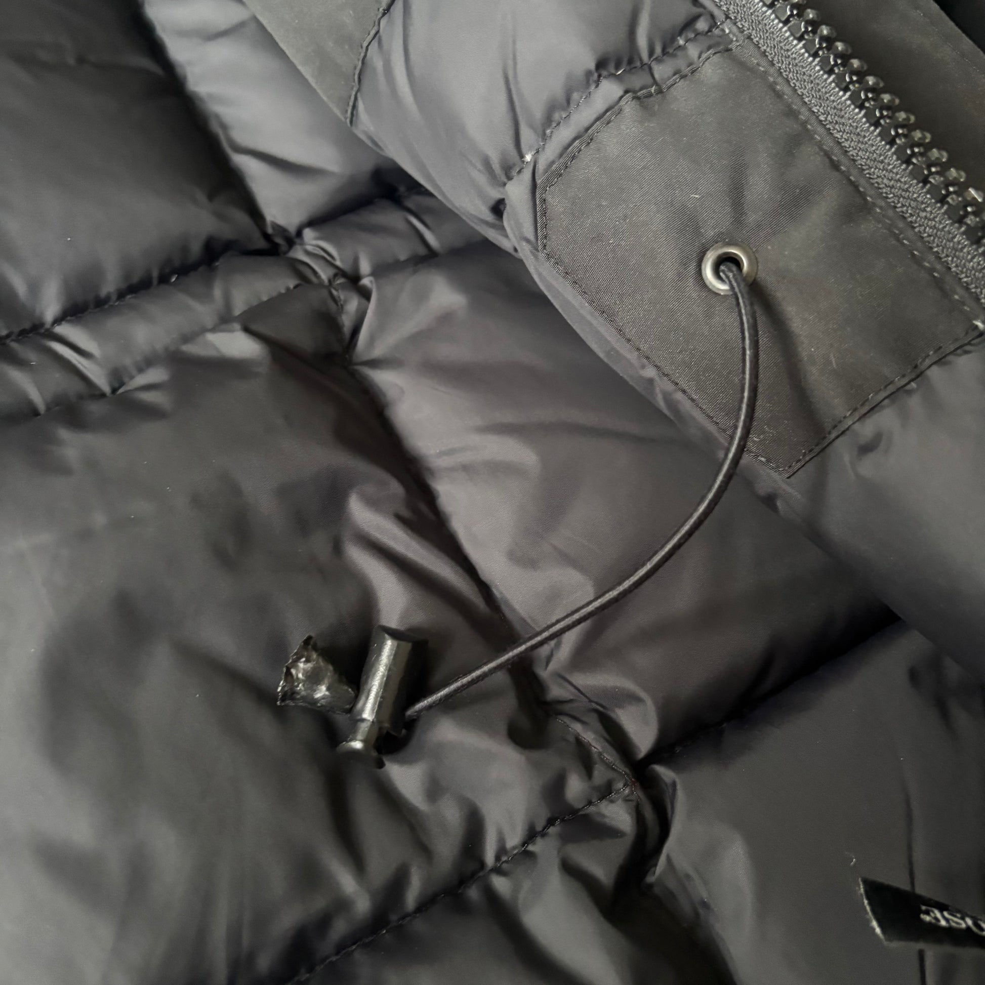 Flaws: Light general wear and damage to interior toggles as shown. Not visible on the outside of jacket