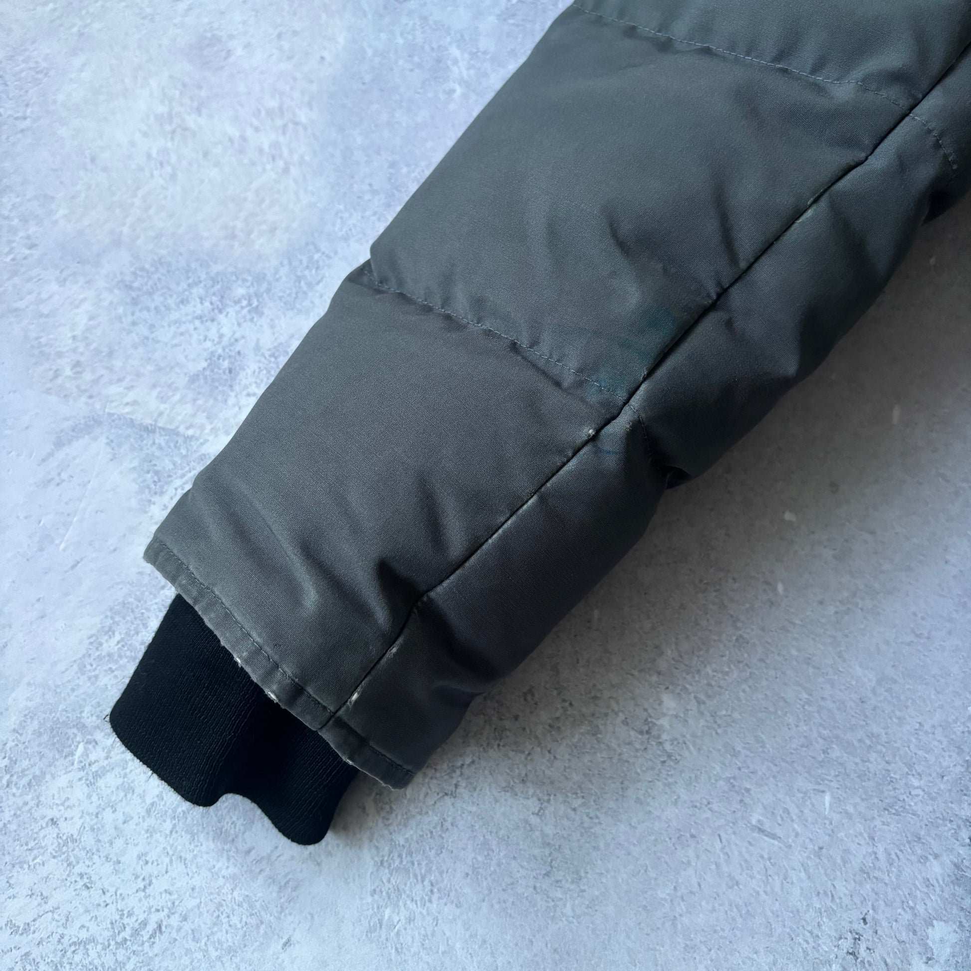 Flaws: Some wear around inner side of arms & cuffs as shown Common with this model and not noticeable when wearing. (outer sides of arms have no flaws as shown)